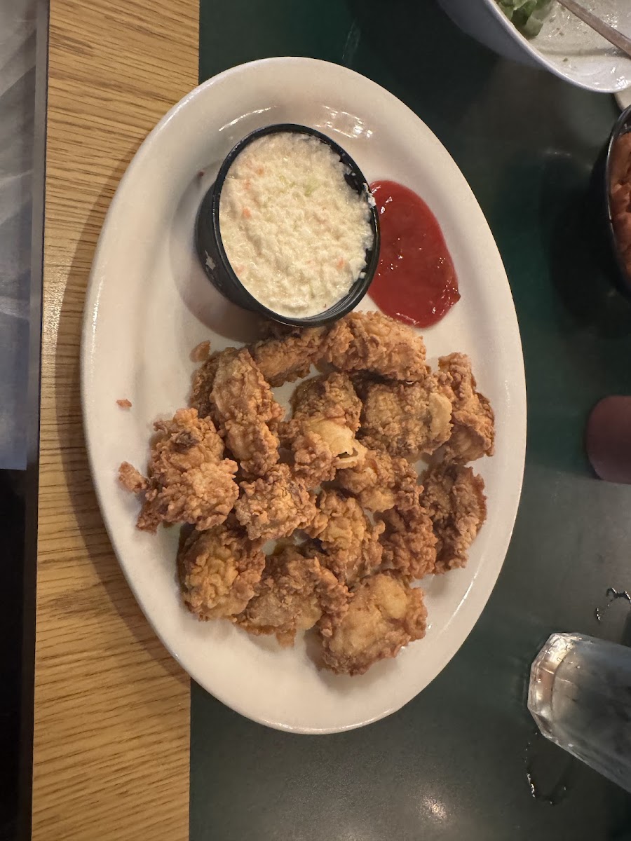We LOVE this place! They consistently have excellent quality seafood! Everything is hand breaded from clam strips to onion rings to scallops to the fish. The haddock is sweet, light, and flaky. The clam strips, the oysters, the popcorn shrimp (yes, even those), and the fantail shrimp are always good choices. My son ordered the chicken and shrimp Alfredo with the shrimp as fries popcorn shrimp... Wow! It was great and overflowing! Cannot recommend this place highly enough!!!